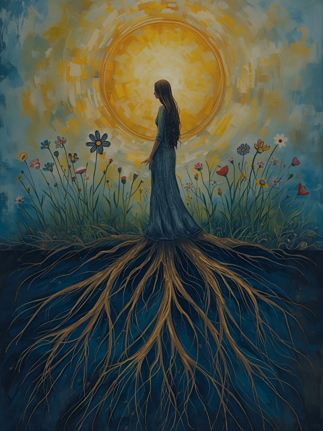 This is the moment when the psyche is touched by something larger than the personal story. Time slows. Meaning deepens. The woman encounters an inner authority that does not shout, yet commands reverence.